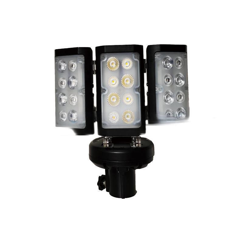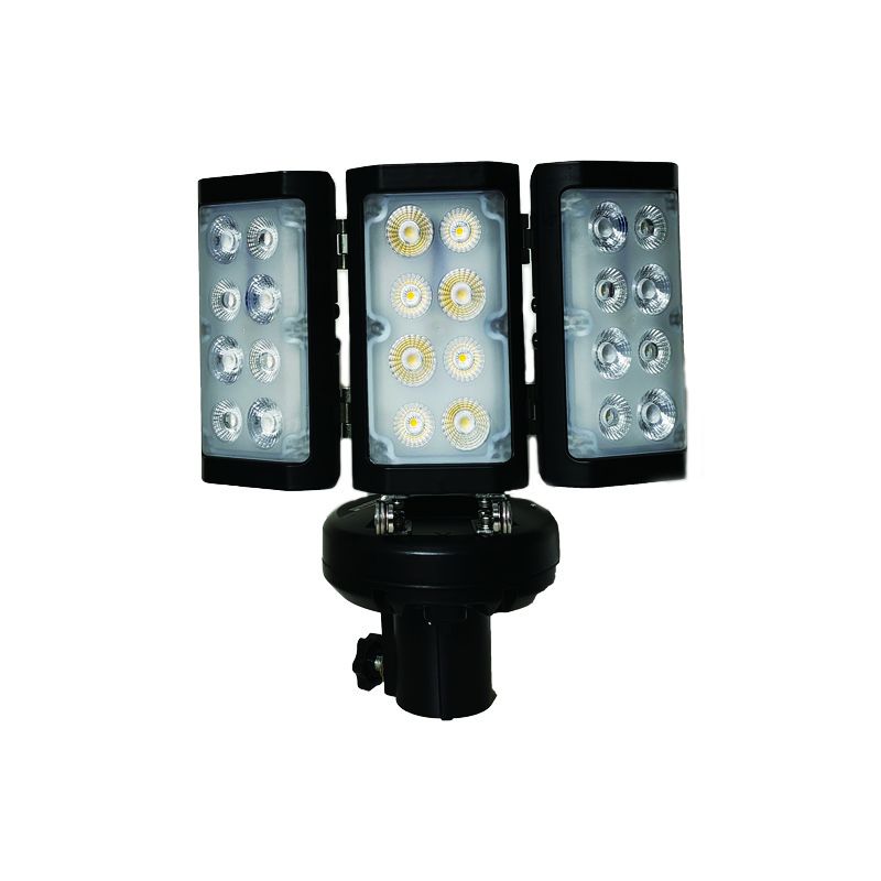 1.采用高亮度LED光源,三灯头折叠设计,既可360°环照,亦可单向投光照明。